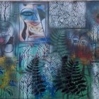 The image features a vibrant abstract composition with swirls, floral motifs, and ferns. Diverse colors blend, creating a dreamlike atmosphere that explores nature's beauty.