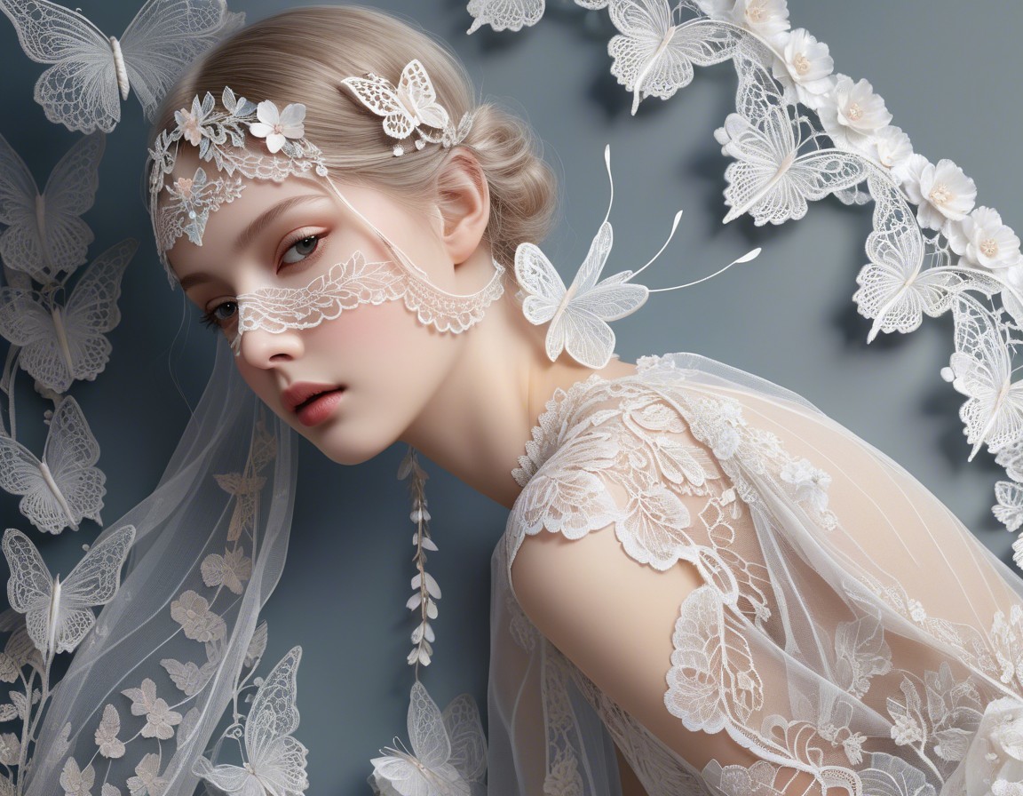 Prompt: "Intricately woven lace butterfly, delicate lacework details, ethereal and light, intricate patterns, lace wings with floral motifs, transparent and airy, pastel colors, soft and elegant, intricate lace filigree, artistic interpretation, detailed and high resolution, soft natural lighting to enhance lace texture and shadows, Art Nouveau style, digital illustration, Artstation."
