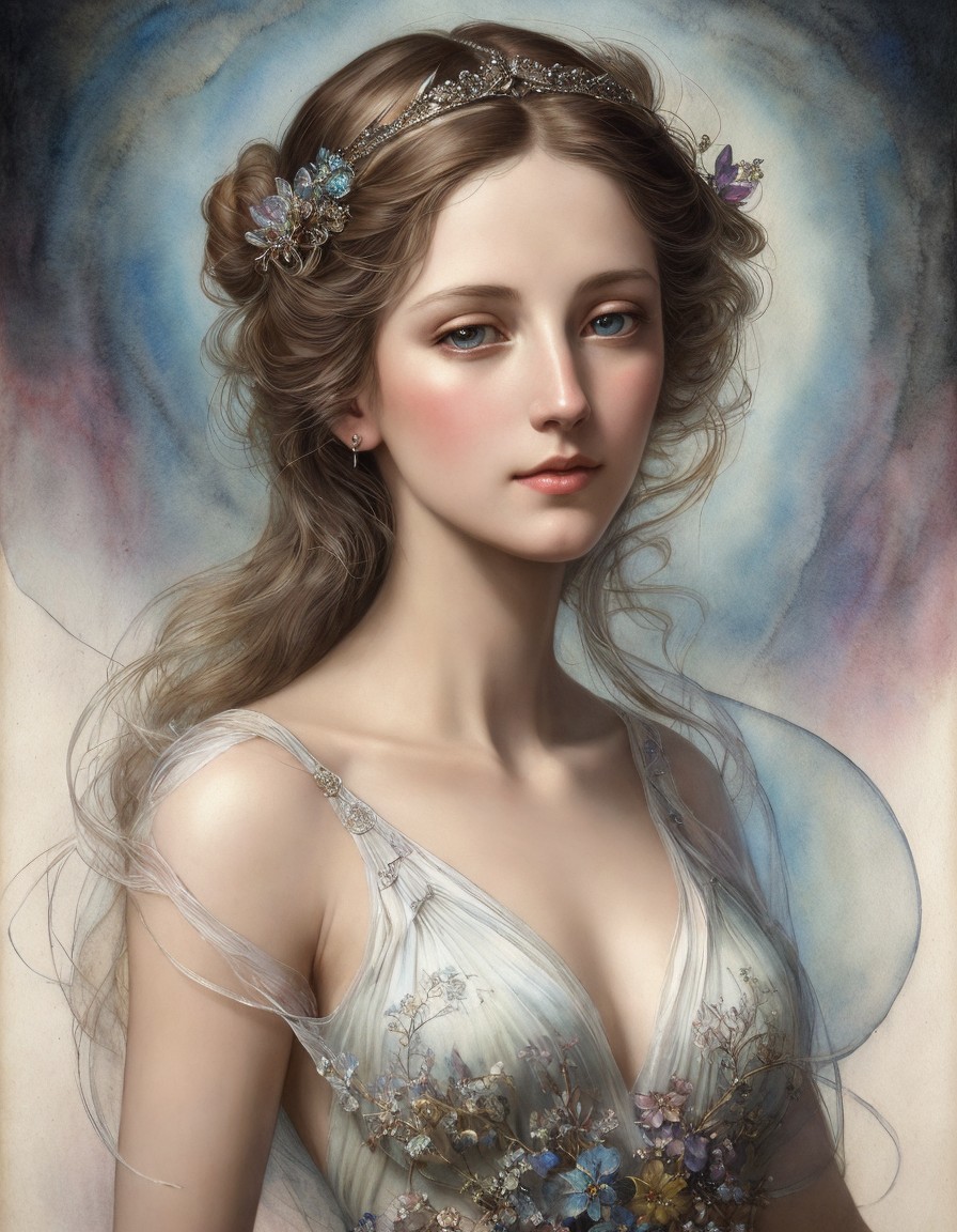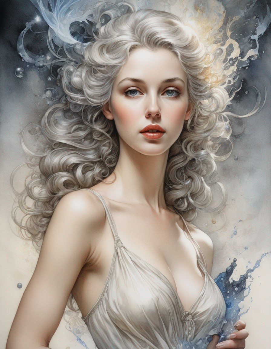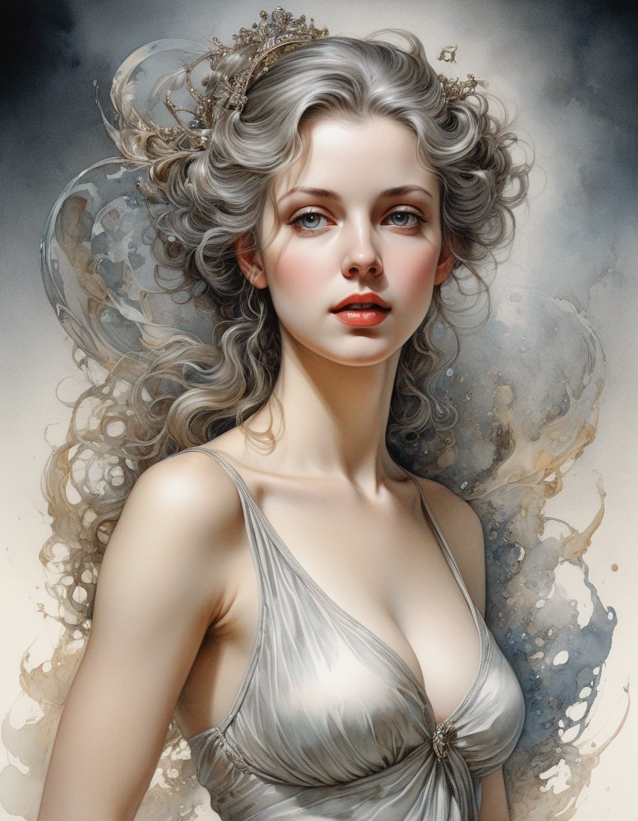 laboratory prophettess, beautiful by Cameron Gray, by Charles Binger, delicate detail, photorealistic, hyperrealistic, ultrarealistic, dynamic, astonishing, excellent, polished, elegant, fabulous colored ink drawing, watercolor artwork on old withered paper, vintage, by Caravaggio, Fragonard, Anton Pieck, pale colors, high detail, intricately detailed, hyperdetailed volumetric lighting, art nouveau graphic steampunk., whimsical, beautiful, poignant, touching. colors rose, gold, rust, burgundy, black.soft watercolor extra water in Art Deco by Annigoni, Egon Schiele, Milo Manara, Botticelli, Catrin Welz-Stein, Jean Metzinger, Klimt, perfect eyes, perfect handsface, highly detailed, complementary colors, hyper detailed. Watercolor and ink splatter, dynamic pose,