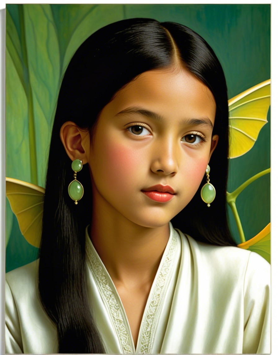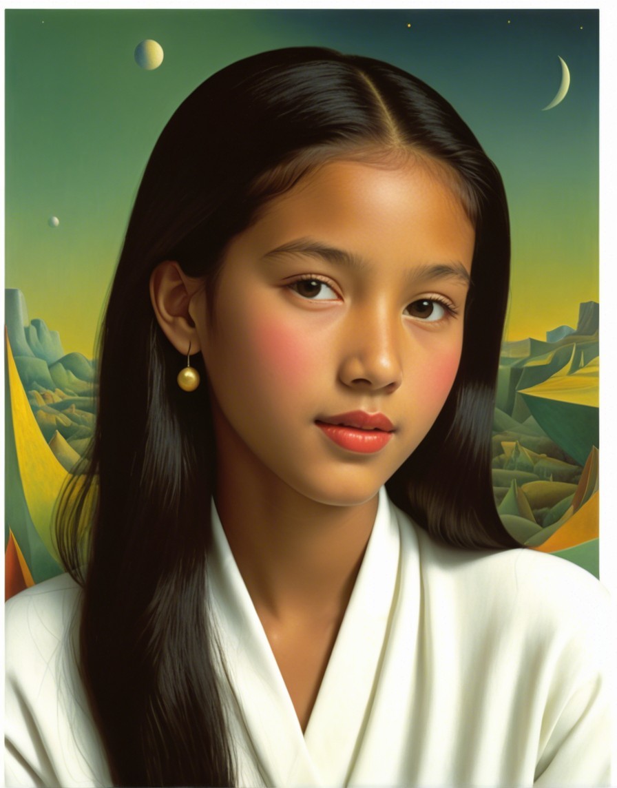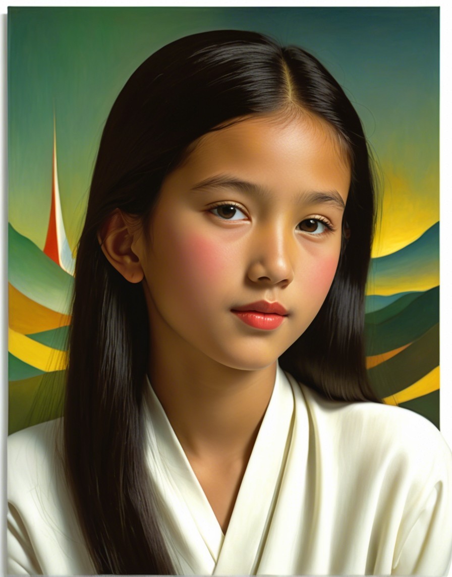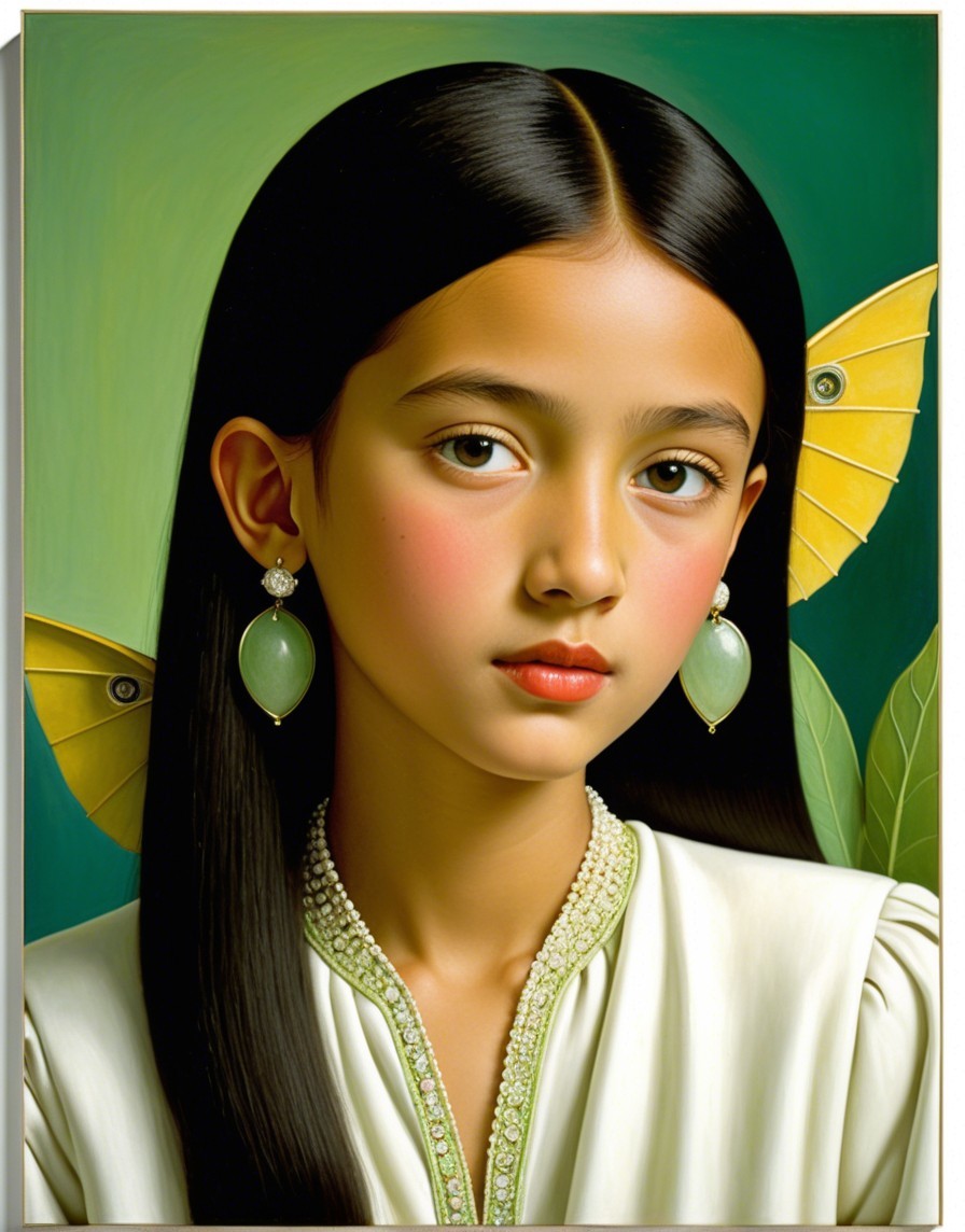 Prompt: Juvenile Portrait by Roberto Matta, coloring by Man Ray , stylized american gothic, anglo-gothic, deliberating juminocore reference, intricate embodiment by florine stettheimer, avantgarde style by Ed Binkley, soft rounded edges, warm greens and beiges, dappled llighting, serene, 128K UHD for crisp quality. Integrate warm light reflections to add depth and scale, dyed, parallax occlusion 1.3, textured layers, painterly, glossy, emulsion shifts, --ar 1:1 --q 2 --s 750,multi-layered eyes, soft rounded edges in ink and alcohol, micro-pen linework, mathematically inspired blurry cascade, mesmerizing complexity RHADS technology enhances the atmospheric feel. 3D textures and raytraced shadows 1.3 for a drifting, 3-dimensional effect in volumetric lighting for a captivating ambiance by Charles Rennie Mackintosh, dynamic lighting by Chaim Soutine, wavery texture, triadic color scheme beige auburn dark-yellow, captivating and detailed artwork by Renny Tait and Hugo Pratt, tousled, opaque delicate tones in indiecore style, line-art, visibly textured layers, contoured, hues by Bob Peak, lineage by Balthus, tactile feel, detailed vivid coloring and stacked lines, industrial design, sgrafitto reminiscence, parallax occlusion.128K UHD for crisp quality. Integrate light reflections to add depth for realism and atmospheric feel. 3D textures and raytraced shadows 1.3 for a drifting, 3-dimensional effect. Implement volumetric lighting for a captivating ambiance. Emphasize vibrant pencil sharp edges, rich textures, and a wide array of colors for a clear, ultra-real appearance. Infuse the scene with a soft glow, creating a psychedelic and mesmerizing visual diffuse lighting, ambient occlusion enhancing the overall effect.