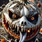 A menacing creature blends a skull with glowing eyes and sharp teeth, surrounded by twisted vines. Its design evokes a dark, fantasy atmosphere, perfect for a haunted scene or Halloween decoration.