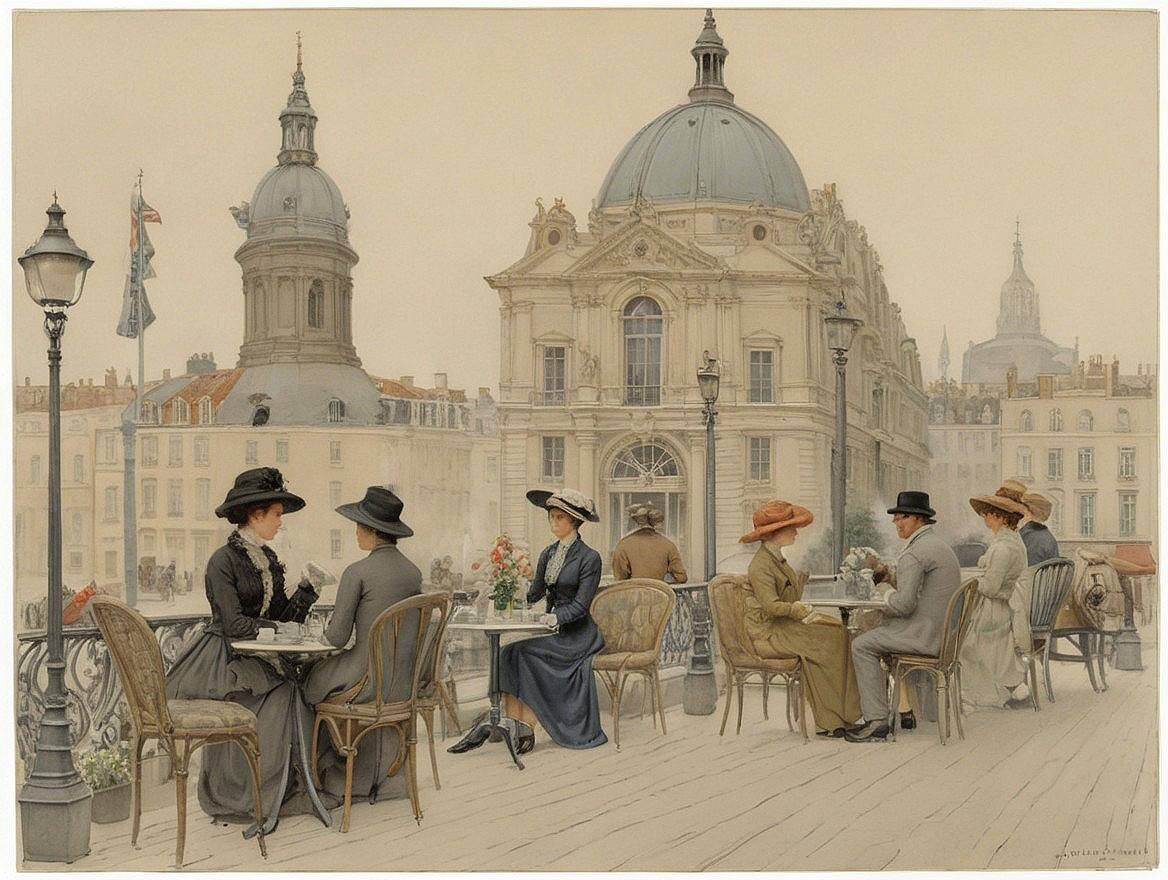 Serene Outdoor Café Scene in Vintage Urban Setting