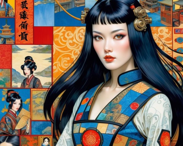 A vibrant fantasy landscape featuring whimsical houses with colorful designs, rolling hills, and a bright sun. Trees and flowers bloom in a harmonious scene, blending nature with artistic imagination.