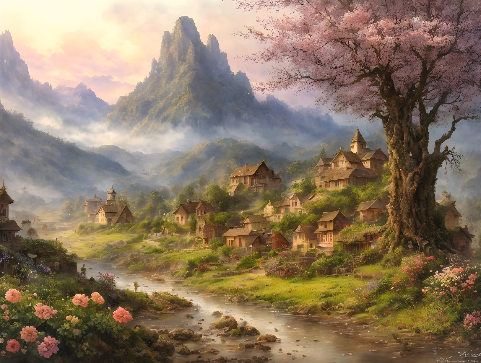Experience a stunning watercolor and ink artwork capturing a fantasy world filled with intricate details, vibrant colors, and beautiful scenery. This award-winning piece showcases a hyper-realistic and elegant depiction of a fantastic landscape with flowers, vines, and roots.