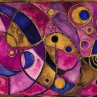 A vibrant stained-glass landscape featuring rolling hills, colorful flowers, and stylized trees. The sun rises in a purple sky, casting a warm glow over the scene, enhancing its vivid hues.