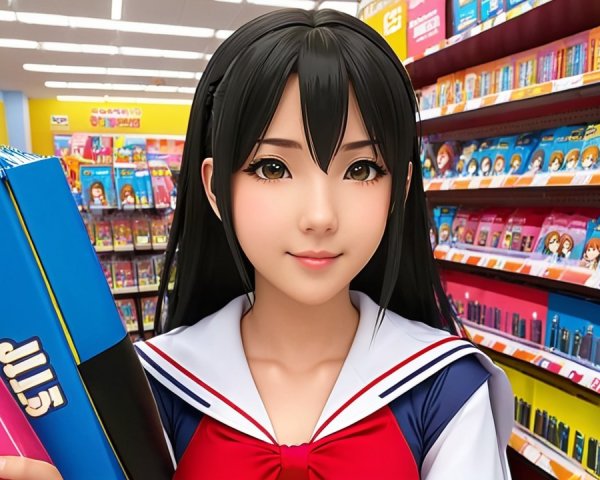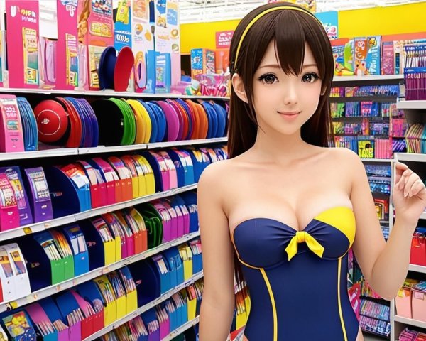 A charming anime girl dons a whimsical swimsuit that seems to have a mind of its own, playfully interacting with her surroundings while showcasing vibrant colors and delightful patterns.