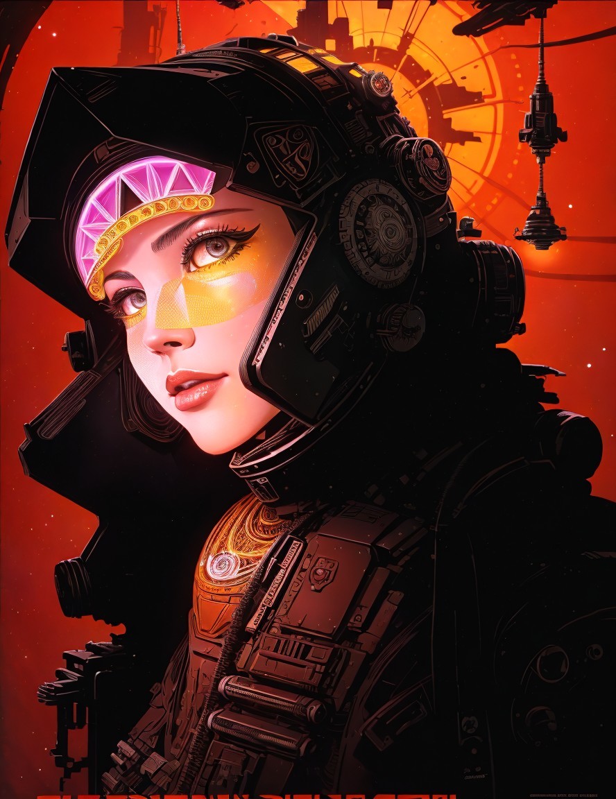 Science-fiction art, Female warrior, headshot,