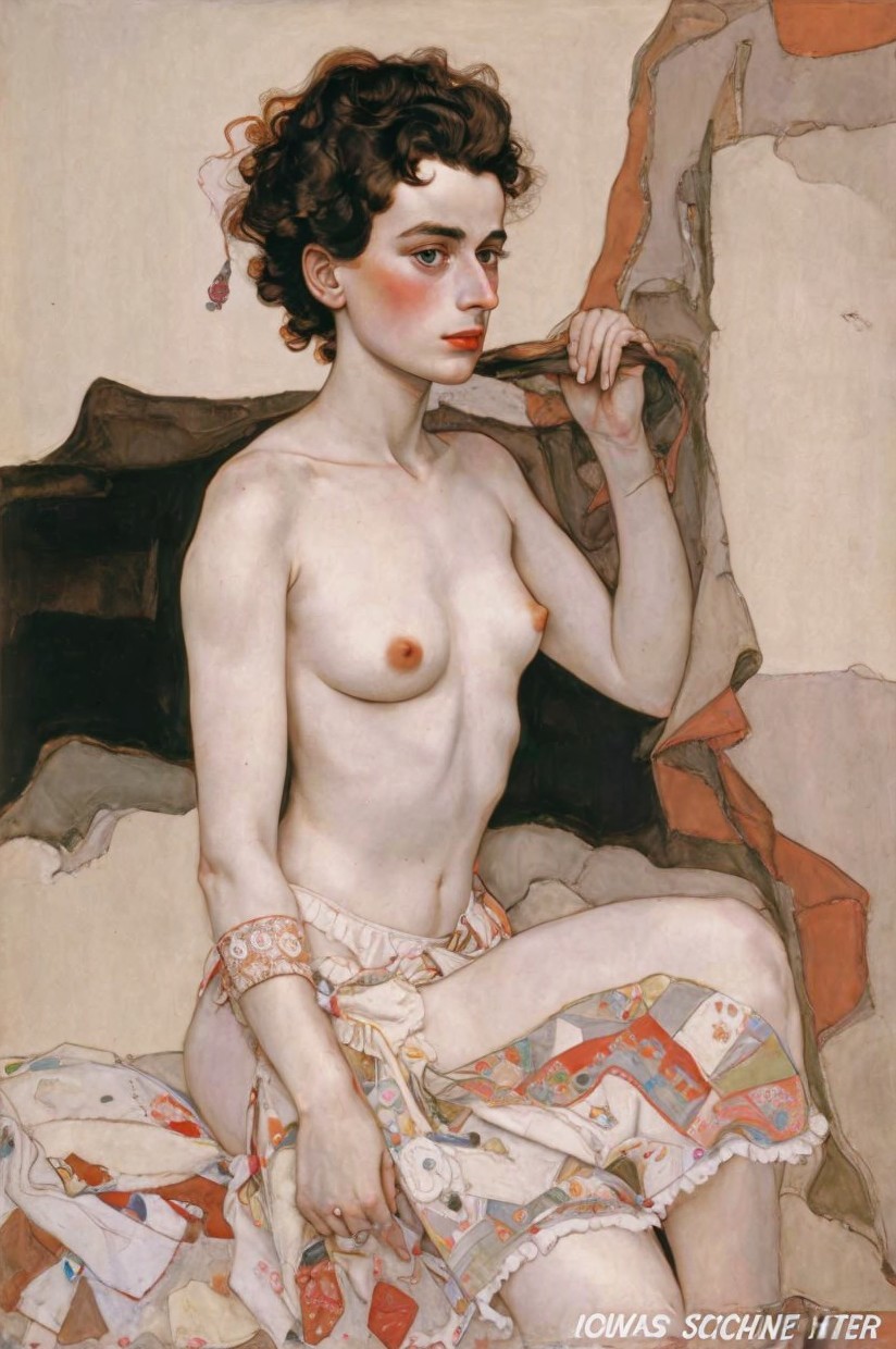 Detailed illustration of woman with dark hair in floral hairpiece, draped garment, pendant necklace, against past