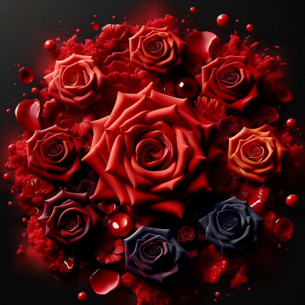 Prompt: "“I am on the petals of roses and on the wounds of war. I am scarlet or carmine. I embody desire, passion, seduction and strength. I reveal myself. If I were a fabric, I would be velvet. If I were a flavour, I would fill the mouth with a taste of flesh and blood."