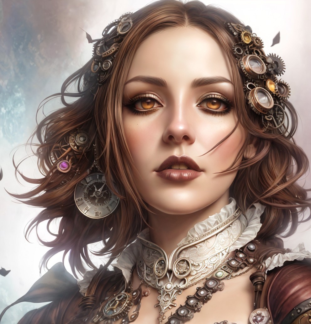 watercolor and ink portraiture, realistic brown eyes, chaotic rim background, retropunk contraptions, 3d effects, dynamic lighting 1.7, chiaroscuro lighting in background, ornamental details, occult, retrofuturistic art, withered pale colors, intricately detailed, gothic fantasy 1.7, dimmed lighting, art nouveau, (steampunk (triadic color scheme pink, ochre, brown) 6:11), inkpunk, surreal background by Ho baron, perfect handsface, ornamental details in vibrant colors, very detailed, (gouache details, strict pose, (bkue background with tints of Margaret Keane, (vivid illumination, intricate surrounding 7:5), tints of 1970s advertising art) 15:11), detailed iridescence, grain, Schreger lines, luminous plasticity, anisotropic filtering, hues, plasticity 2.3, shadow mapping 1.7, volumetric lighting, daguerreotype photography style on old paper,, auracore, anglocore, retropunk, auracore 1.7, synthetic, spiritual essence, 1970s movie poster art, ambient occlusion 1.5 , american gothic 1.7, tints of space age art, geometrical illustration, soft edges, stylized