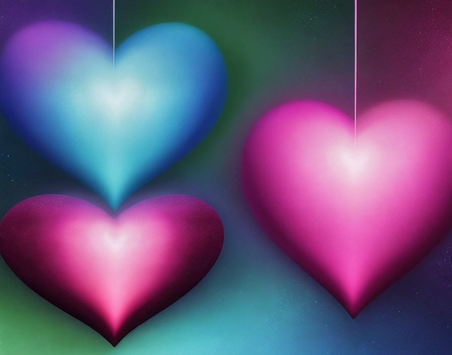 Heart-Shaped Objects with Gradient Colors in Nebula Background