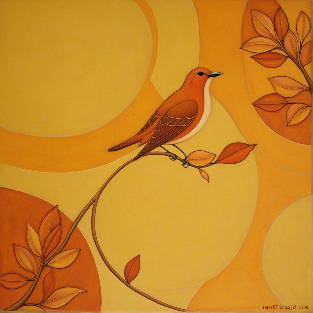 Zentangle painting of a bird perched on a branch of a cinnamon tree.