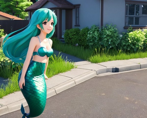 A vibrant anime scene features a girl in a stylish strapless swimsuit, skillfully mixing drinks behind a bar. Her cheerful demeanor and colorful surroundings create an inviting atmosphere.