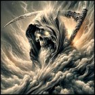 More about Mystical Figure Leaps Through Stormy Skies