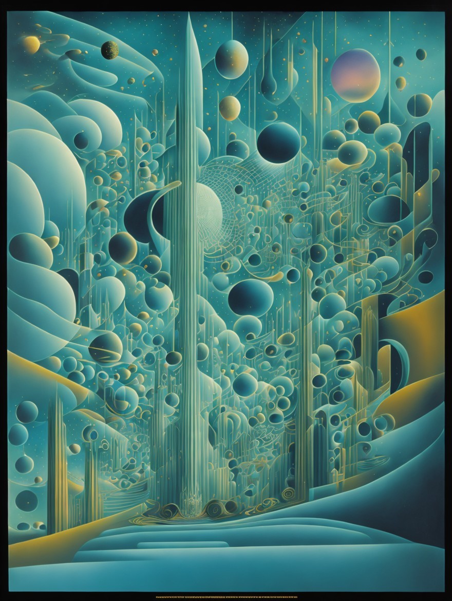 Prompt: Space Orchestra, Recognizable Grand Orchestral Theaters, notes float around, instruments float thru the air, very well balanced, many different harmonious colors, saturated, one image, high brilliance, pinks, purples