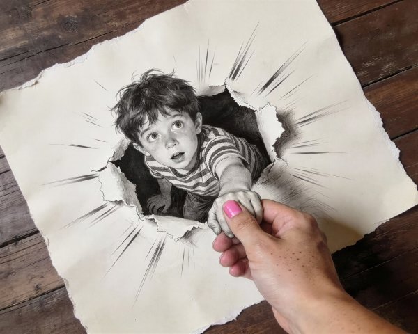 This artwork features a stylized profile of a female face, composed of vibrant, textured tiles in shades of blue, green, and warm tones, creating a flowing hair effect and a serene expression.