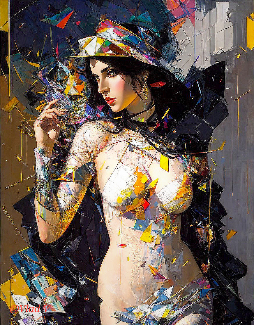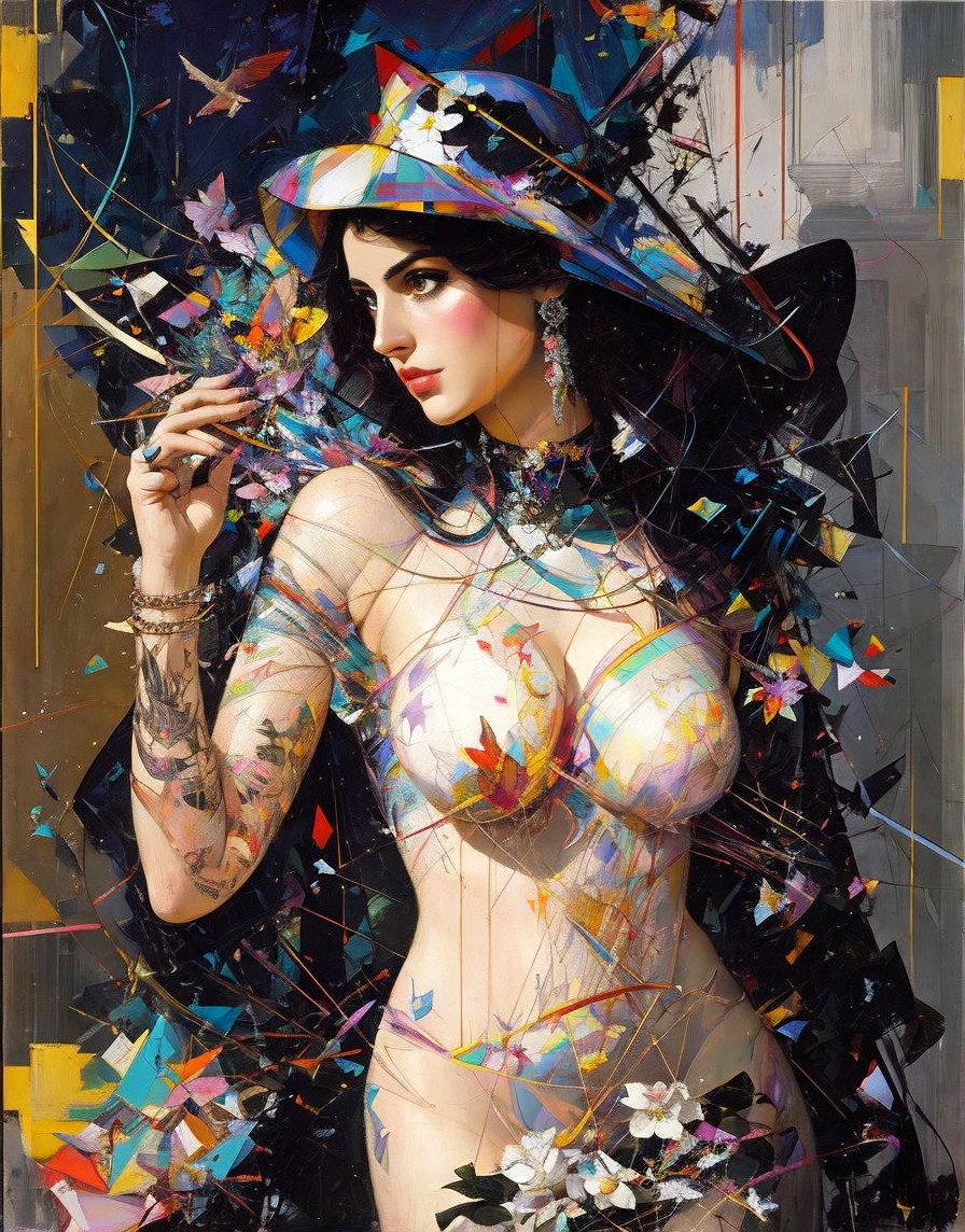 + Prompt:Moody Day Syncopation patrick nagel, Tony Robbin, Pino Daen, opening style of Richard Burlet, Hans Erni, Peter Doig, Escher, Santiago Calatrava, Anthony Hill, Leonardo da Vinci, Man Ray, Hamid Naderi Yeganeh, henry asencio, Hans Hartung carne Griffiths, Klee, Unstructured Maximalism, internally decorative, hyper-Structured Minimalism,