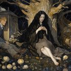 Art by Andrew Wyeth, Erin Hanson, Klimt, CE brock, H. R. Millar, Dee Nickerson, Arthur Rackham. 3d, extremely detailed, beautiful, watercolor and ink, mixed media, Best quality, Very high definition, super clear resolution, cinematic, intricate, fantastic view beautiful dynamic lighting high definition hdr * Random prompt award winning Max Ernst ultra detailed 4K 3D Texture. Autumn, haunted forest, strange plants