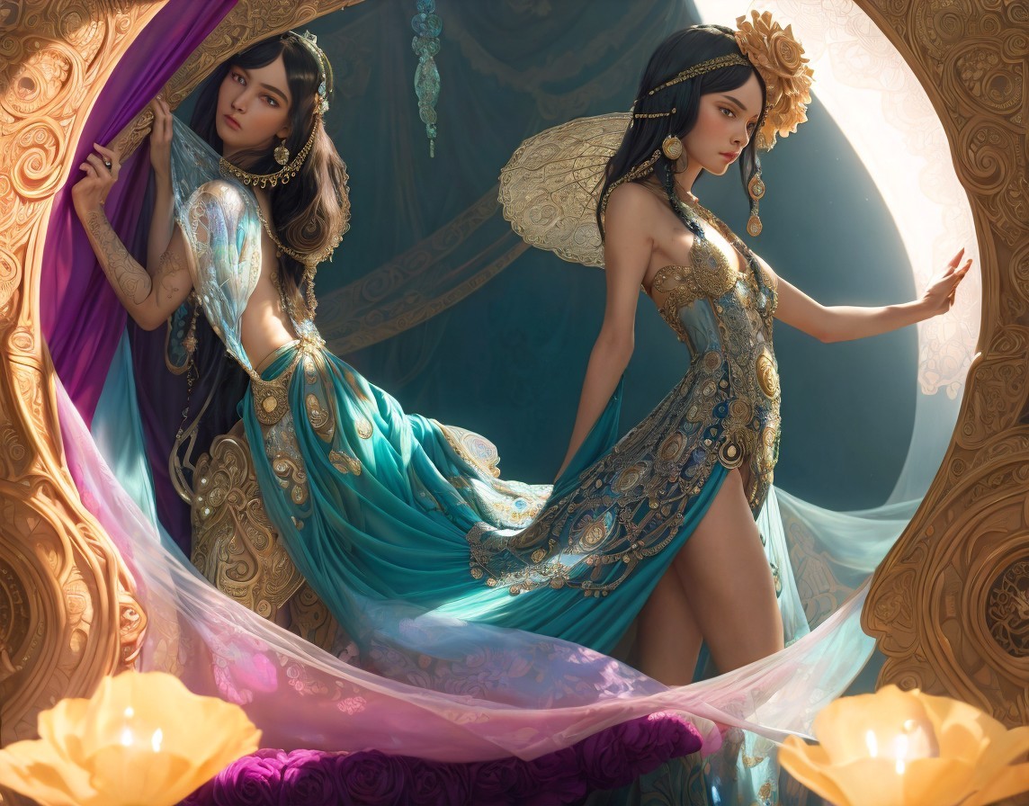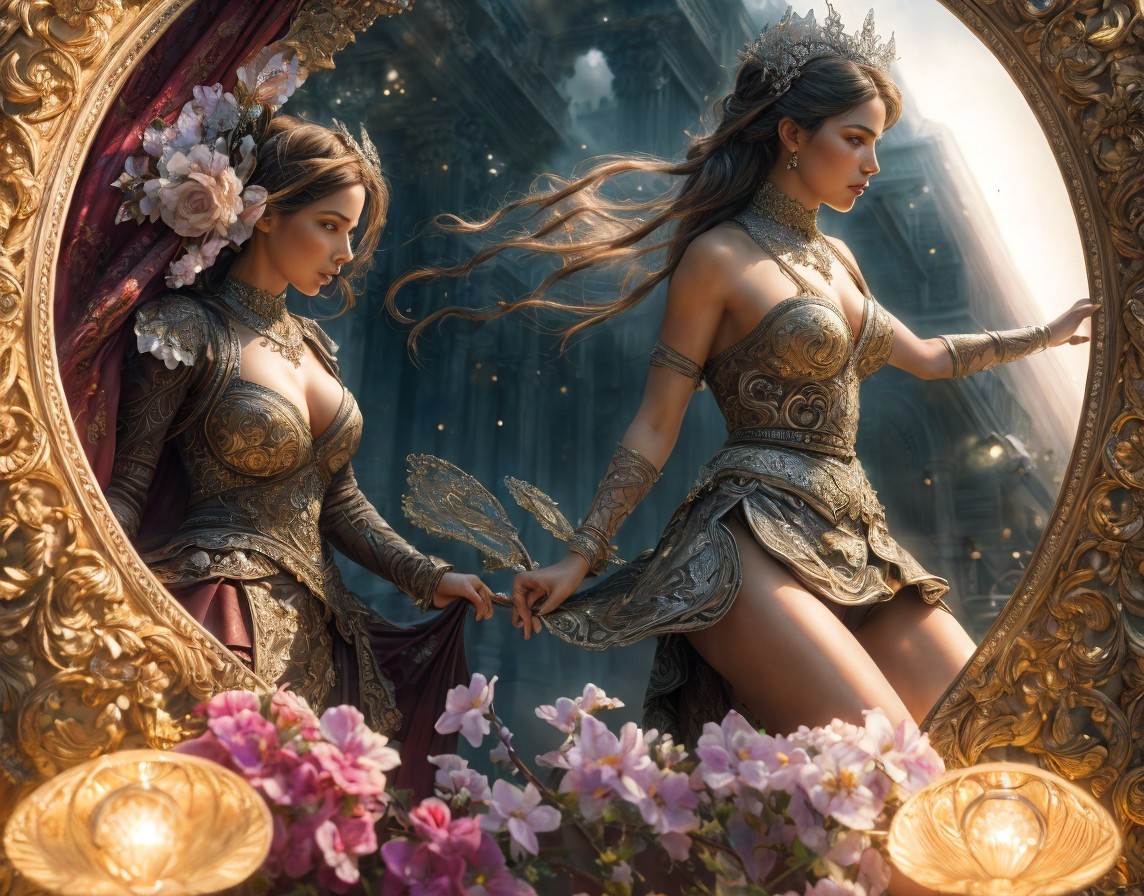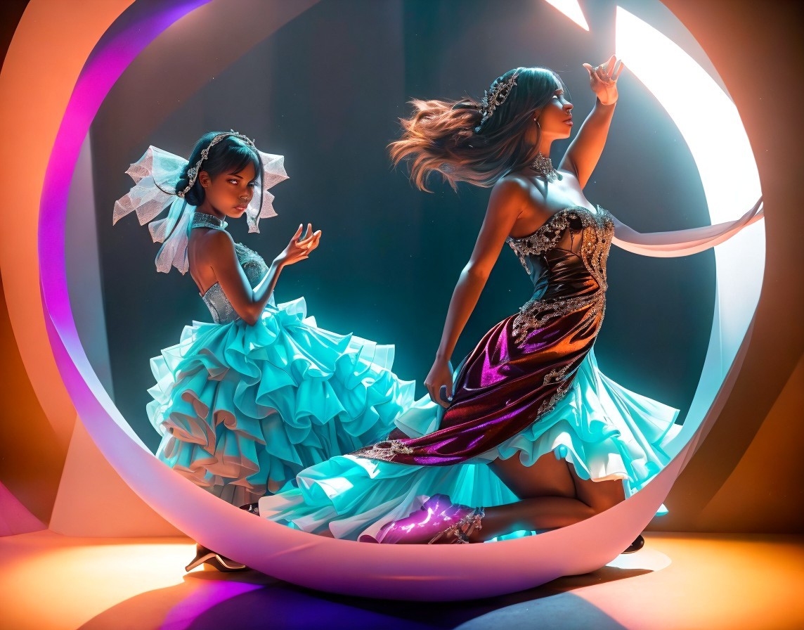+ Prompt:The dim light creates an unsettling interplay of light and dark areas. In the foreground, the protagonist emerges from the darkness, while an imposing antagonist dressed in dazzling white appears in the background. The contrast between the small, dark figure and the bright intruder heightens the tension. Silence hangs in the air, broken only by the clacking of heels. An ominous moment is looming, captured in this dramatic play of light and shadow by Jo Ann Callis_Carne Griffiths_Howard Chandler Christy+Jean Baptiste Monge, detailed digital art