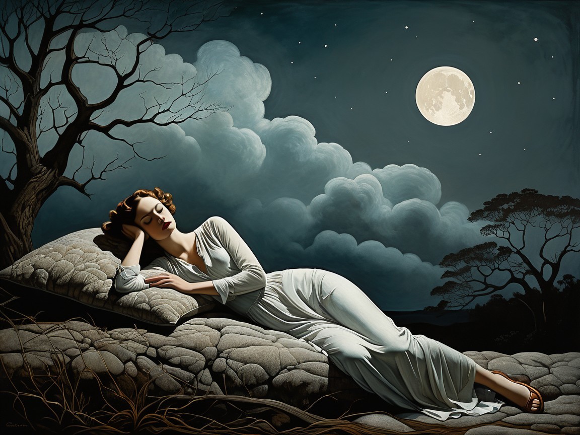 Prompt: "Surreal dream in the style of Ella du Cane and Mayfield Parrish, nostalgia, glory, Mercury Glass patina, light and gossamer haze, topographic lines, Art Brut, moody, somber, desaturated colors. In the style of John Rogers cox . This artwork amalgamates the artistic styles of Michael Parkes,