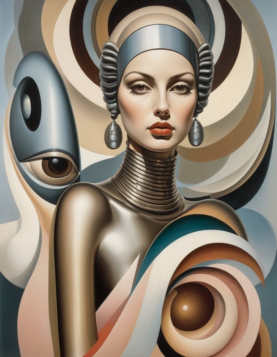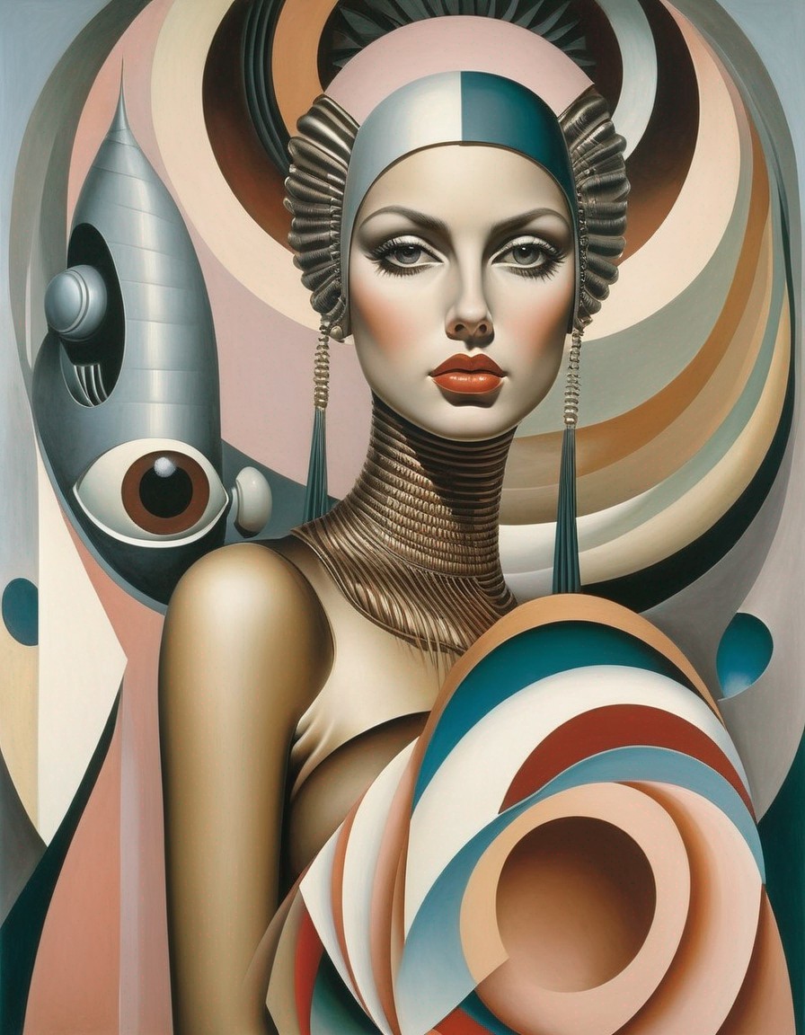 Futuristic armor portrait of a woman in architectural setting