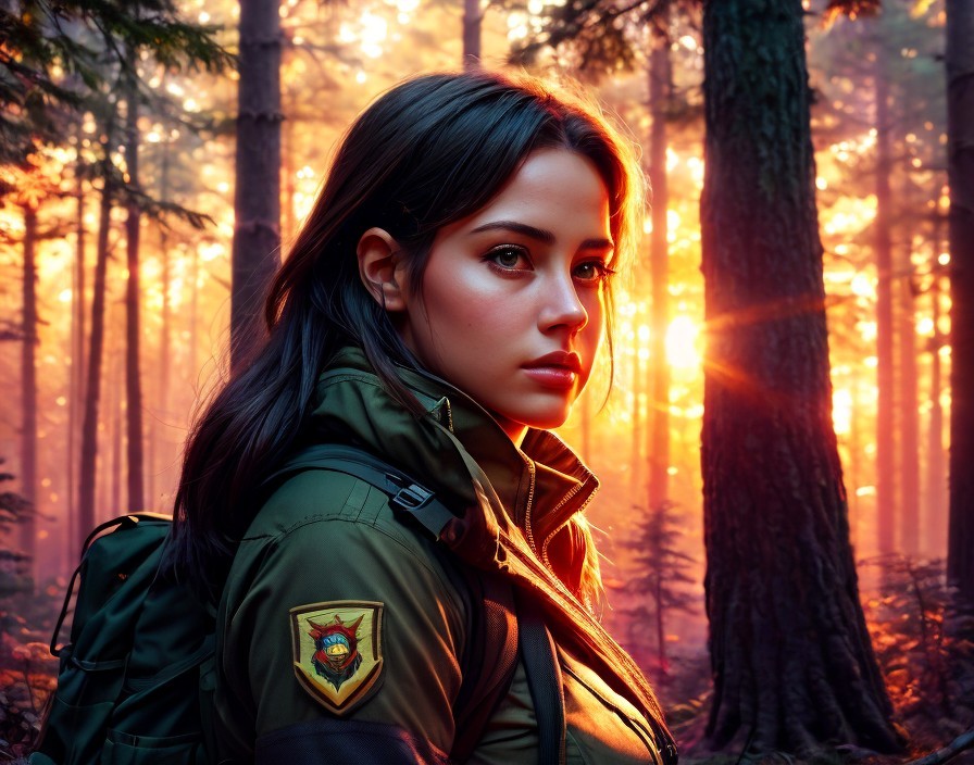 A female ranger moves through the forest Forest