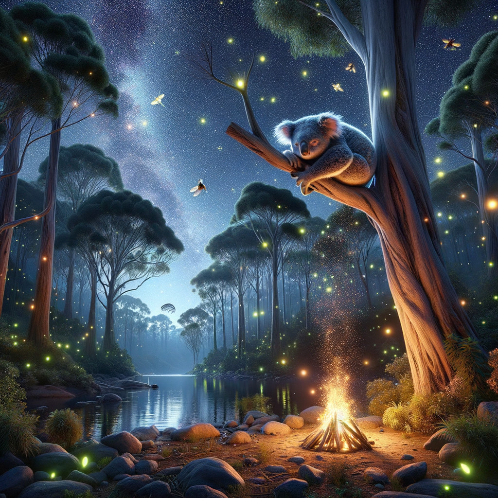 Perfect imagery of a koala bear sleeping on a branch of eucalypt tree