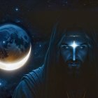 Cody's Eye on a picture of the Moon and Cross, (not my Picture) The "lesser light" is the moon, which governs the night. While it reflects the sun's light, it serves as a guide in the darkness, symbolizing hope and guidance.