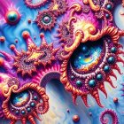 A fierce woman with long, flowing hair rides a red motorcycle through a dramatic, cloudy landscape, showcasing her tattoos and tough style in a vibrant, dynamic painting.