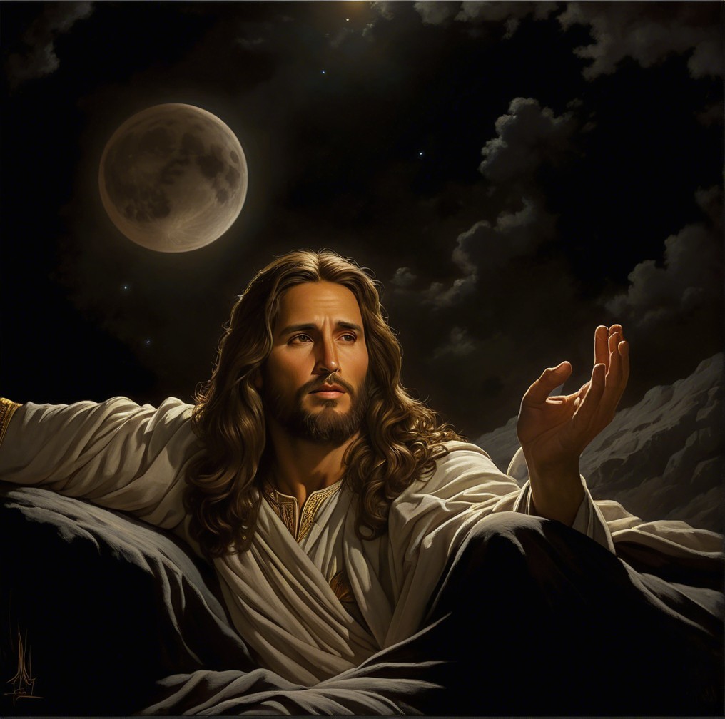 Traditional Jesus Figure Against Dramatic Night Sky