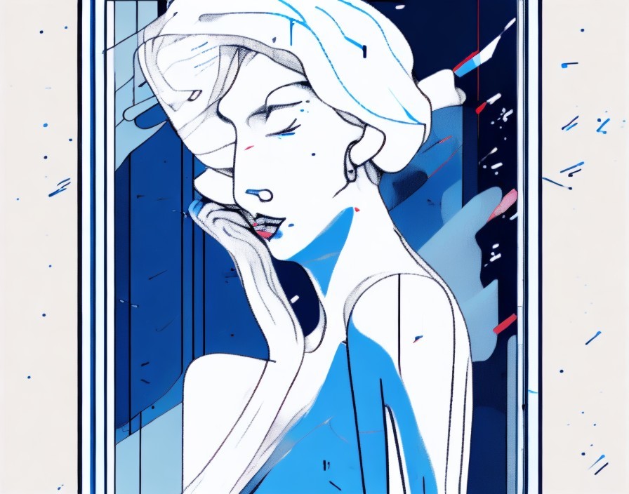 Stylized Illustration of a Woman with Blue Skin