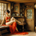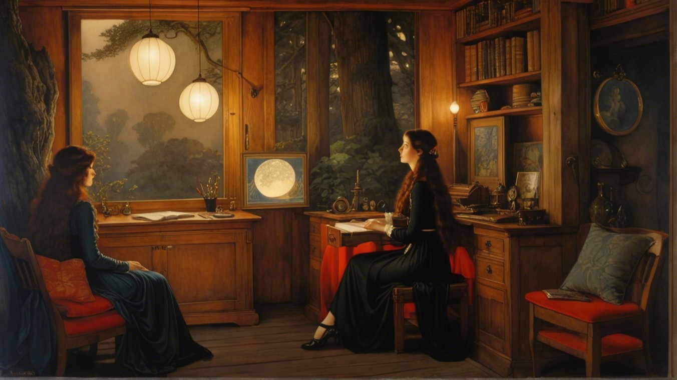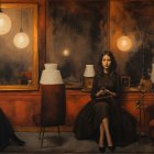+ Prompt:Create a minimalistic expressionistic painting which illustrates this concept: "The truth is not far from us; it is within us." "Solitude can do funny things to the mind . foggy nostalgia, portrait in Burnt umber and salmon gold, smoke and mirrors, patina of, battery acid, art brut, moody, somber, desaturated colors, in the style of Paul Klee, Arthur Rackham Dark and moody oil painting of a woman with piercing black eyes, inspired by the works of John Singer Sargent and Edgar Degas, long shot, realistic texture, dramatic lighting, intricate details on clothing and Magical woman fading tones of melancholy and summer nostalgia, soulful portrait, in burnt umber, plutonium, patina of mercury glass, tea stains, art brut, moody, somber, desaturated colors, in the style of Paul Klee, Banksy, Arthur Rackham, based on Prompt by KRW