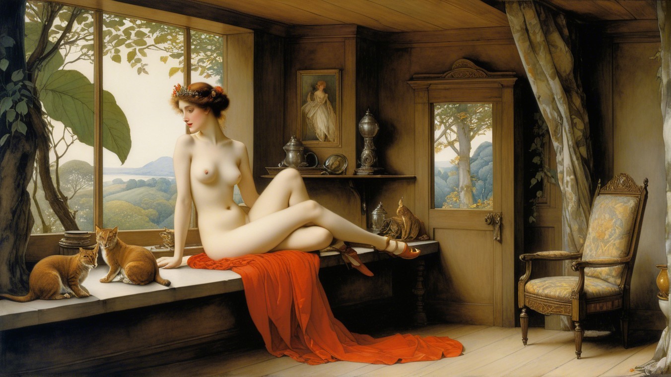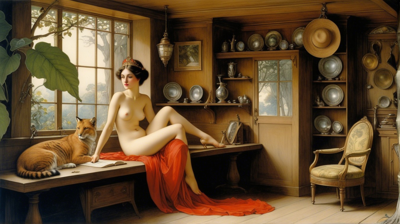 Prompt: A masterpiece of unparalleled excellence)), ((( beauty I walk with the old magic, & the wild gently at my side; The creatures of the forest know me; Not as queen, but as kin. in the style of John Frederick Lewis ))), Stunning watercolors, Pen and Ink, Pencil drawings, as if created by Michael Parkes, Arthur Rackham, Ernst Haeckel, Gustav Klimt, Jean-Baptiste Monge, Kandinsky, Tim Burton.: intricate 8k very attractive wallpaper hyperrealistic ultra detailed high definition colourful Ultra realistic Alexander Jansson 8k intricate very attractive intricate