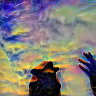Jesus Figure Draped in American Flag Against Sunset