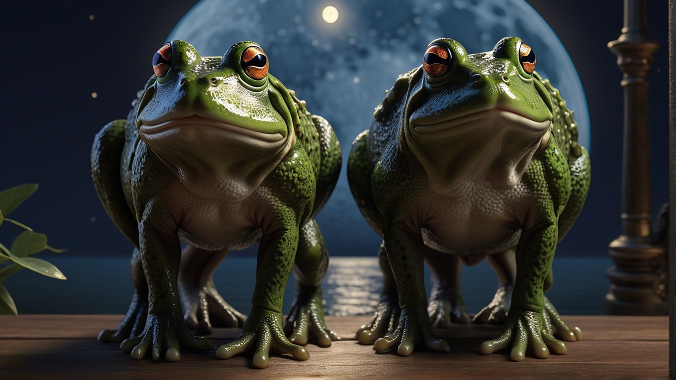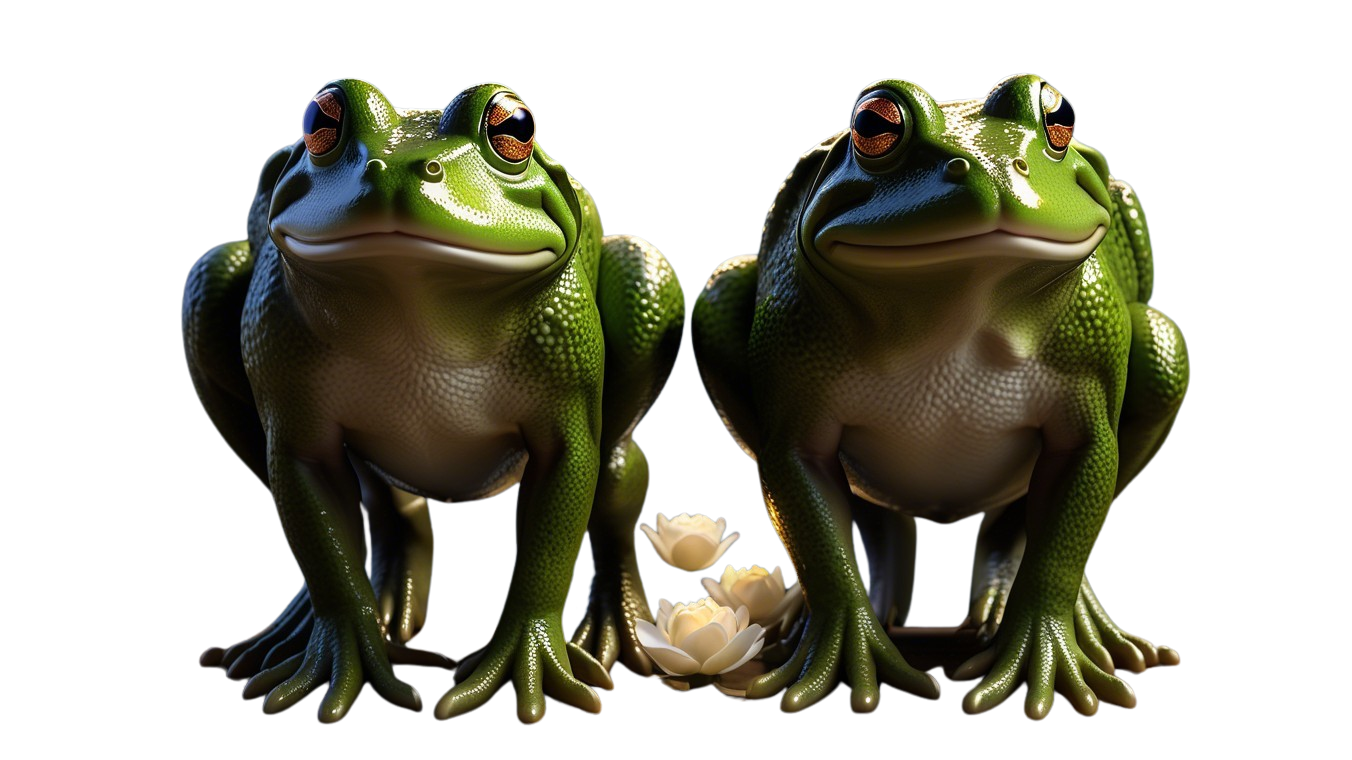 masterpiece, Whimsical lighting, scene of romantic bull frogs in the moon light. add flowers such as white roses or carnations plus golden lily vines. ornate gold metal picture frame around the bull frogs.