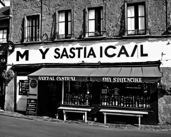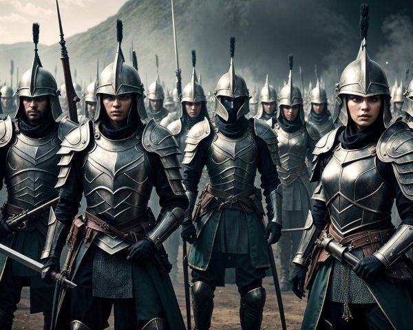 Four young women pose together outdoors, wearing matching red dresses with white blouses and bows. Their outfits feature suspenders, and they stand against a backdrop of green foliage.