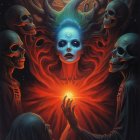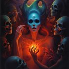 Mystical Scene with Blue-Skinned Woman and Pumpkin