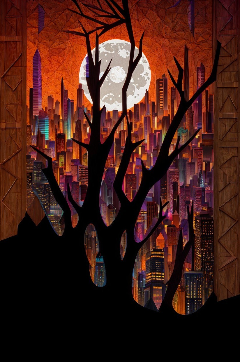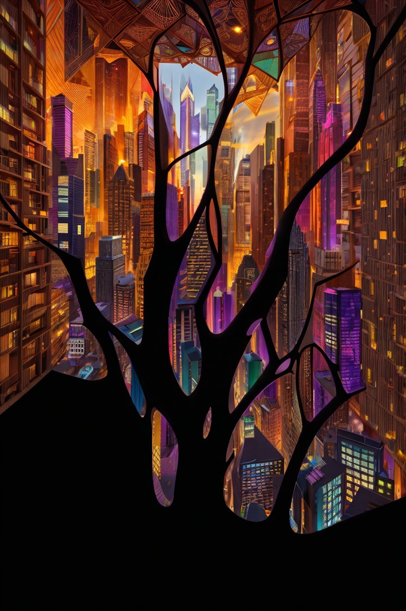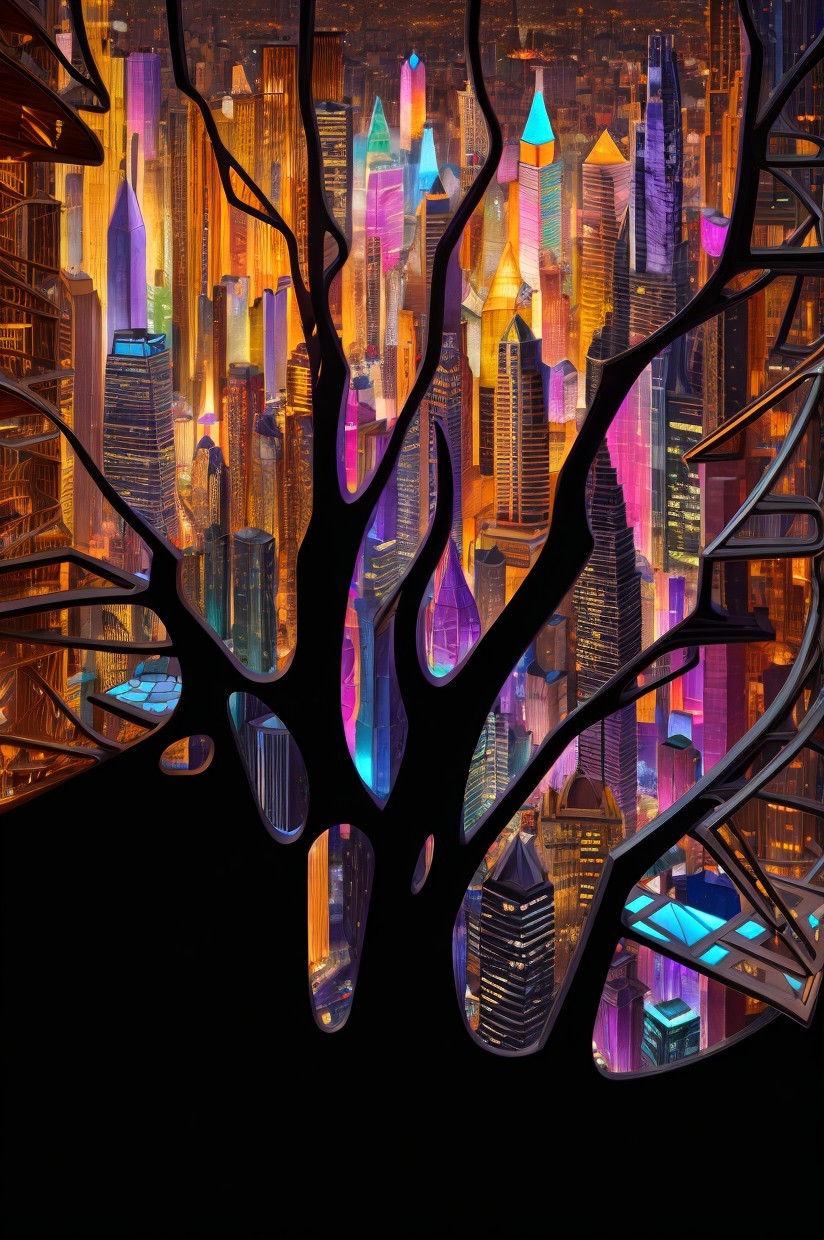Colorful Abstract Cityscape Illuminated Buildings on Dark Background