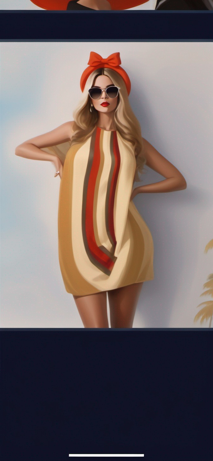 Prompt: Hollywood movie diva depicted in full figure in a magnificent white dress with a wide-brimmed white hat and sunglasses, stands in a dynamic and sensual pose, her hair being carried by the wind and the dress fluttering. The photographer captures her in front of a luxurious blue 1960s Lincoln Continental coupe deville on the beach with palm trees.