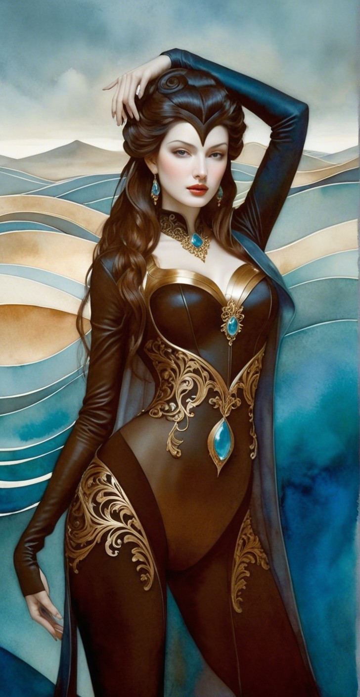 elegant, fantasy, intricate, very attractive, abstract, novelty architecture, sawtooth wave, hues by William Bradley, beautiful, thinned watercolor, hues by nicola samori, embodiment by brian froud, exquisite detail, dappled lighting by stan lee, calligraphic precision, light silver and dark bluish overspray of paint, zen lines, swirls that form landscape details, rim lighting, plasticity 1.4, tesselated, stippled, blotting, --ar 51:64 --s 250 --v 6. 0 --style raw, mystical, stylized, art noir, dark fantasy, sea-green, baby blue, warm beige, Juveniile diva.Watercolor and ink, outlines by Arlie Opal in pen and ink technique, (overall compostion in Ink, tea, alcohol on watercolor=, 3 point lighting, diffused lightbeams, reflections, luminous, liminal, impossible light transitions, spatiality, slighly exaggerated features by Man Ray, acrylic ink, splashing effects, ambient occlusion 1.5, anisotropic filtering 1.7, back-lit, squiggly line-art reminiscence, alternative fashion magazine photography style, scruffy hatching, dof, layered, bokeh, debeh, dyed, hues by Harrison Fisher, straight, Unstructured Maximalism, Novelty architecture, Hyper-Structured Minimalism, perfectly resonated aesthetics, psychedelic, trippy, plasticity 1.6, radiance, sculpted, cel-shaded, science fiction mythology, otherworldly ambiance, mosaic, collage-style depiction of facial features,encaustic, Bloom-Effect, overexposed, overspray of paint. Cel-shaded, acid wash, subtle coloring. Diffused lighti line-art merged with collage-style by Man Ray, continuous line drawing, Outlier drawing, encaustic, Bloom-Effect, overexposed, overspray of paint. Cel-shaded, acid wash, subtle coloring. Diffused lighting, brightness 1.9, stylized artwork by William Bradley and Barclay shaw in warm tones. symmetrical, brightness 1.3, slightly fragmented depiction, blurred realism, flattened vector brushstrokes, minimalist geometrical approach, academical art inspired, sensual, feminine beauty, delicate composition,