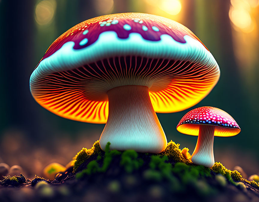 Colorful Mushroom Caps in Enchanted Forest Setting