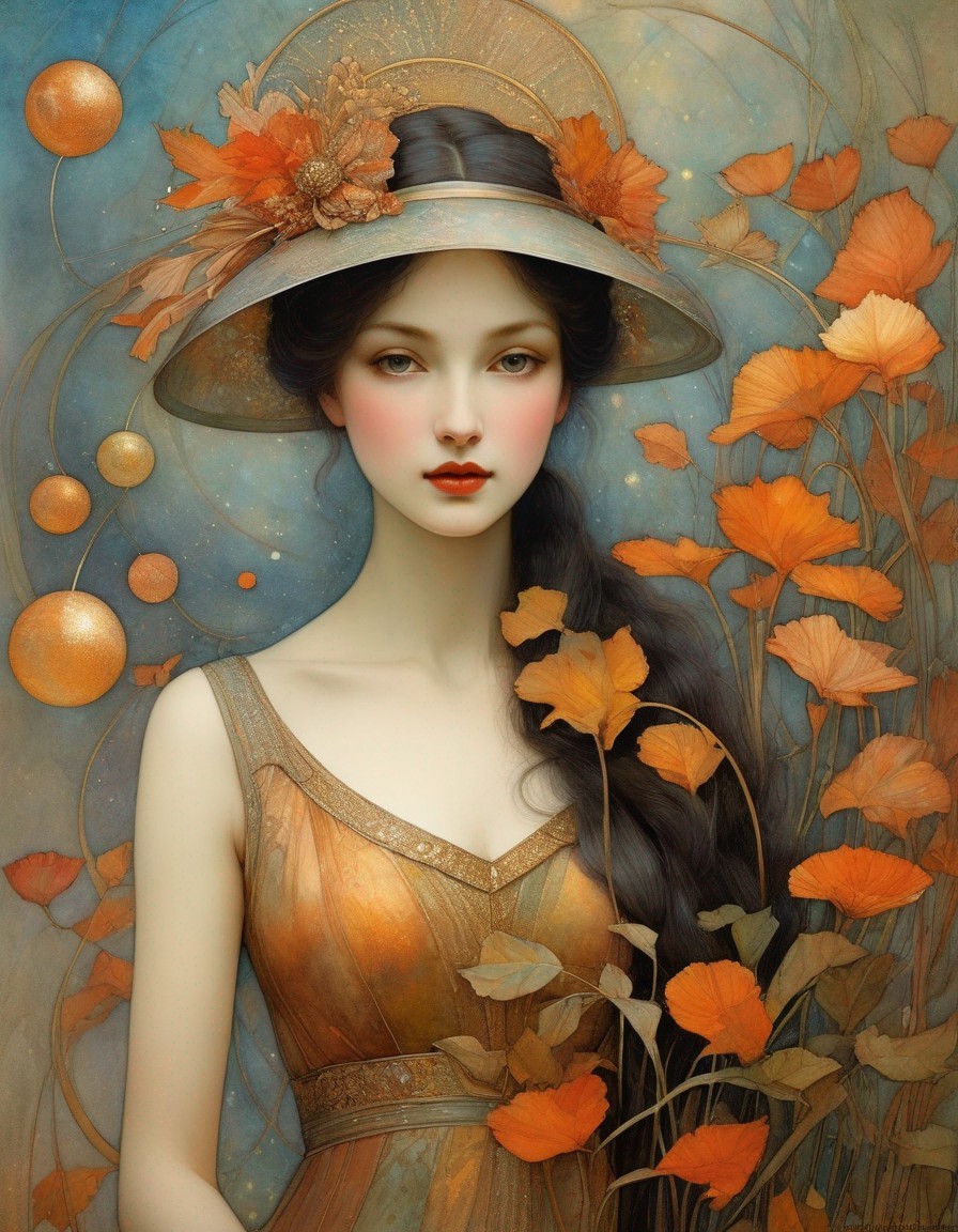 Prompt: Iridescent watercolor and ink By Jamie Heiden, Daniel Merriam, Paul Klee, Karol Bak, Dee Nickerson, extremely detailed, high definition, crisp quality, ultra detailed background art nouveau New Year’s Eve ball.