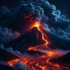 Nighttime Volcanic Eruption with Lava and Ash Clouds
