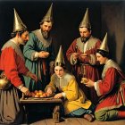 Skeletal Figure in Surreal Landscape with Stormy Sky