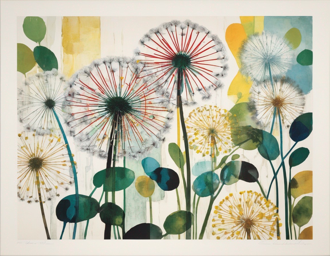 Modern Floral Artwork with Bold Geometric Shapes