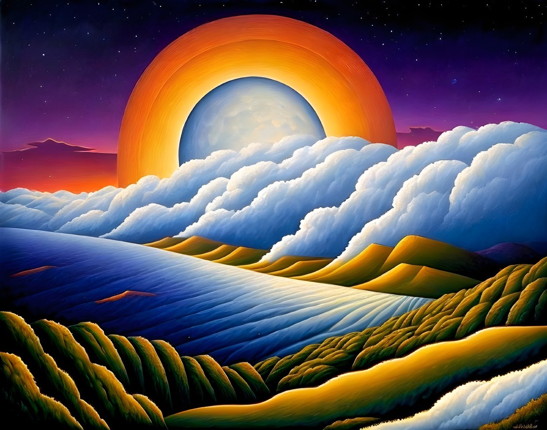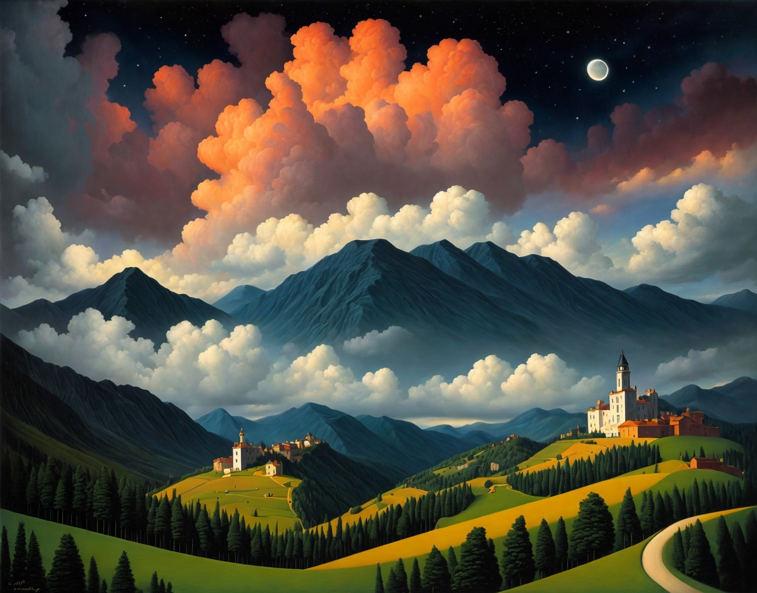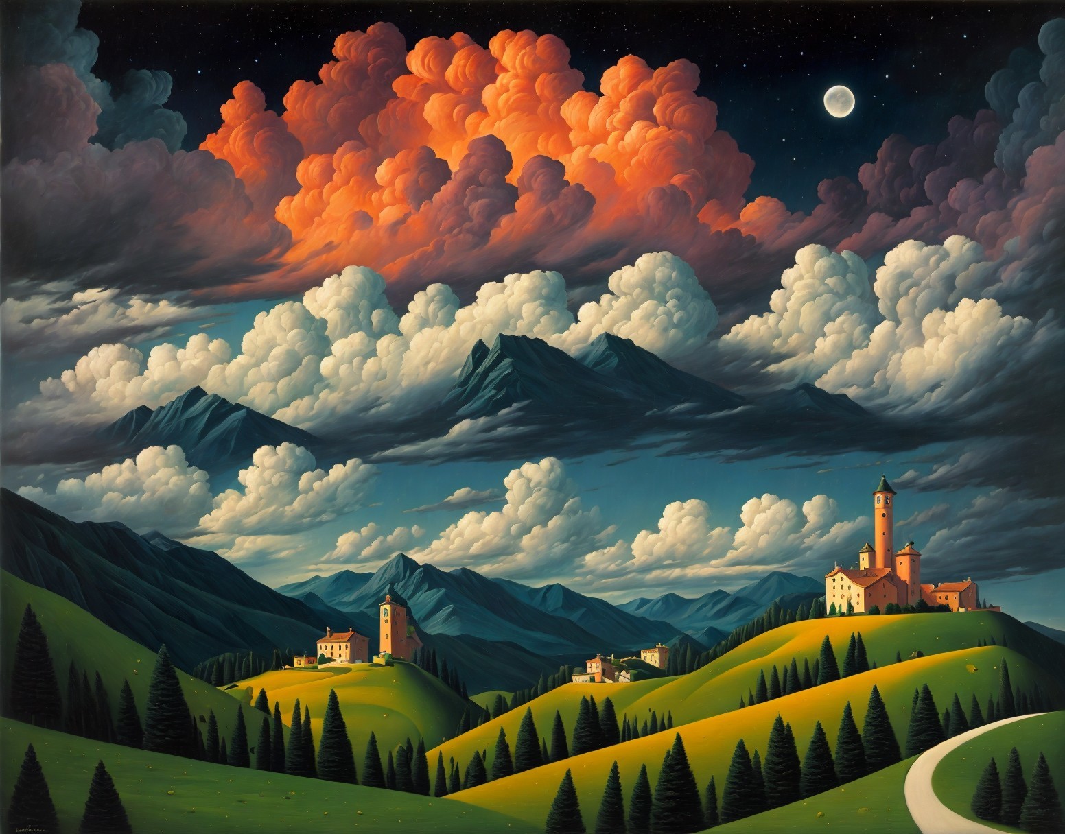 Serene Landscape with Rolling Hills and Dramatic Sky