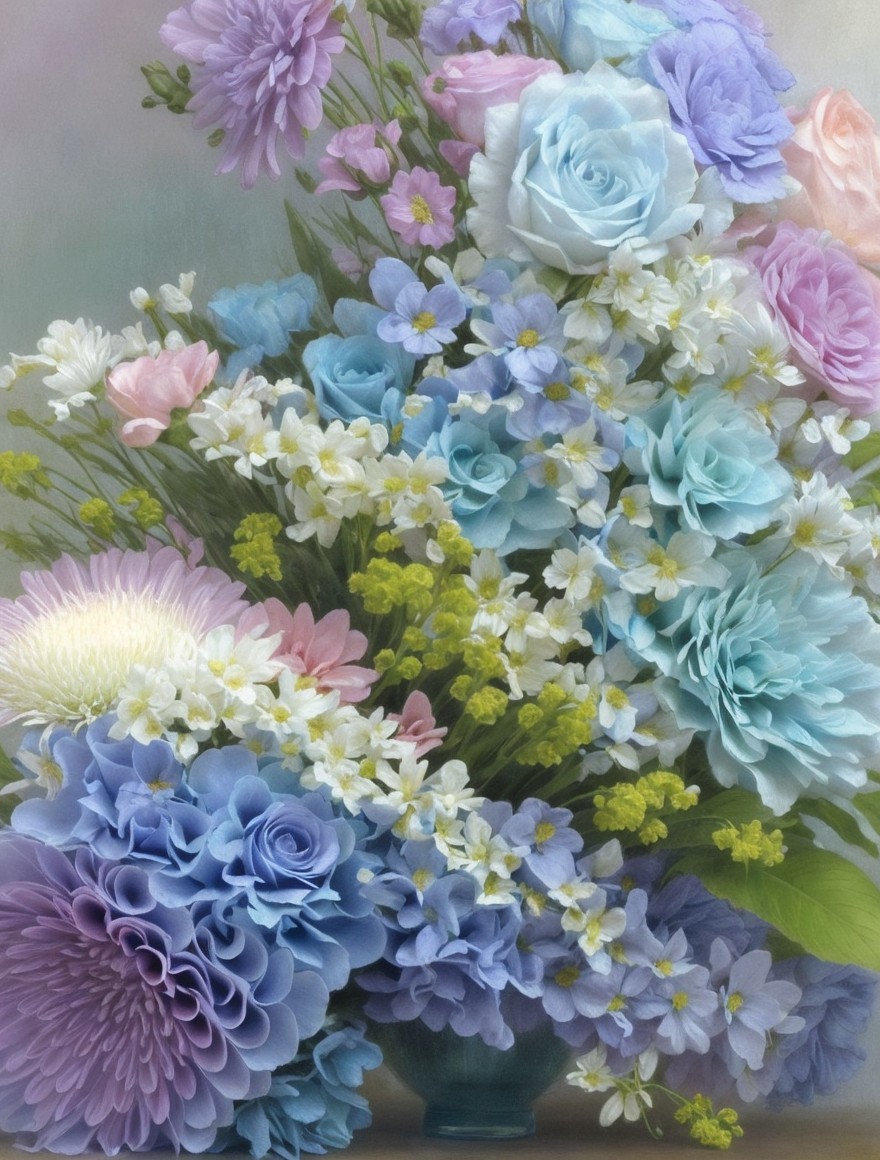 Colorful Bouquet with Blue, Pink, and White Flowers