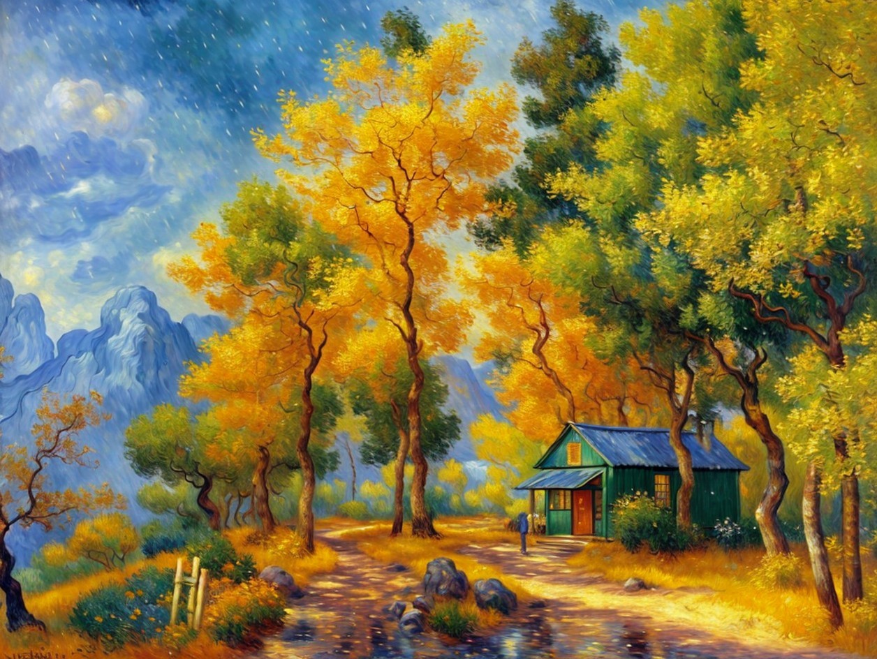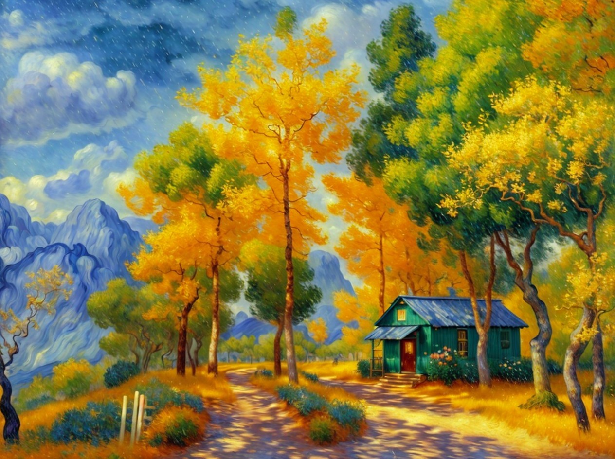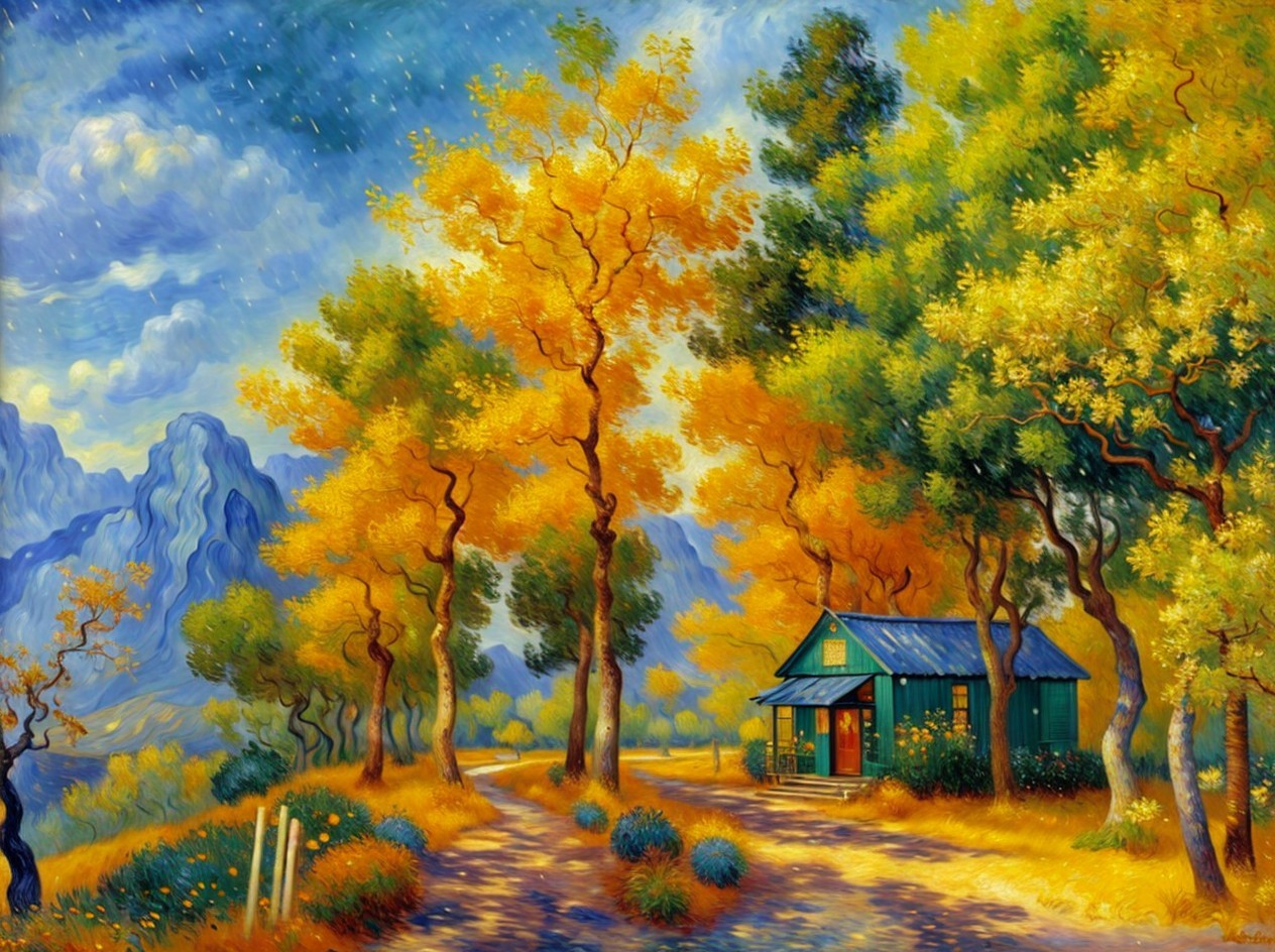 + Prompt:You fill up my senses like a night in a forest, like the mountains in springtime, like a walk in the rain, like a storm in the desert, like a sleepy blue ocean. You fill up my senses. Come fill me again. Van Gogh, Renoir, Michael Cheval, Luis Royo, Nelson Boren, vivid colors, psychedelic, Mescaline, 3D render, 3D shading, bright, back-lit, luminescent