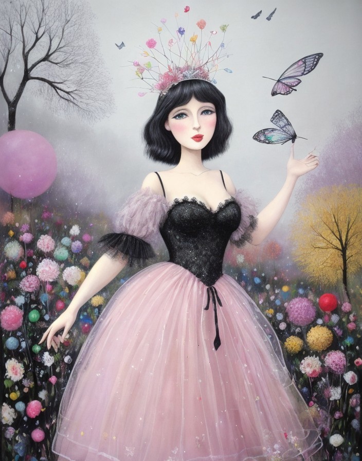 Prompt: "In the style of Sandra Boynton, Sam Toft, David Downton, Sophie Delaporte, Yvonne Coomber, Sergei Diaghilev, Dan Colen, Jan Brett: show me the spirit that moves me, medieval grunge fairy tale; that is one of the few facts at once sad and true, 3d hand drawn illustration of all the pretty things life can handle we meet ourselves time and again in a thousand disguises on the path of life, overexposure, blink-and-you-miss-it detail, whimsical background, backlight, their eyes are so big, surreal expressionism, rudolf ernst, art brut, cartoon whimsical character, colorful animation stills, detailed character design. Extremely detailed, intricate, beautiful, fantastic view, elegant, crispy quality."