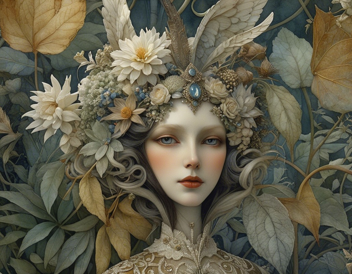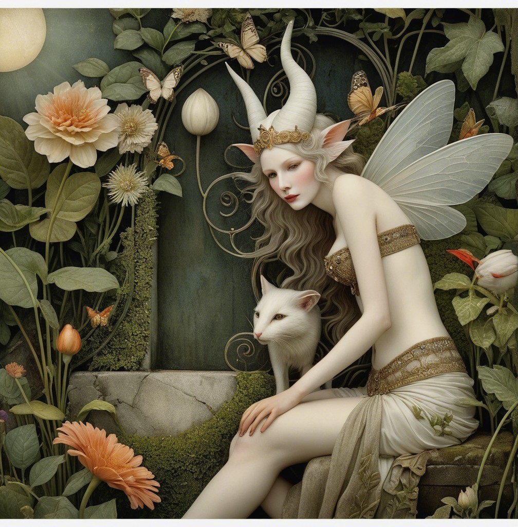 + Prompt:Close up, impish beautiful white-faced creature in a garden wonderland labyrinth, in the style of Wolfe von lenkiewicz. by Catrin Welz-Stein, Michael Parkes 3d, extremely detailed, beautiful, watercolor and ink, mixed media, Best quality, Very high definition, super clear resolution, cinematic, intricate, fantastic view, beautiful, dynamic lighting, high definition, hdr *Random prompt award winning Max Ernst ultra detailed, 4K 3D, Texture